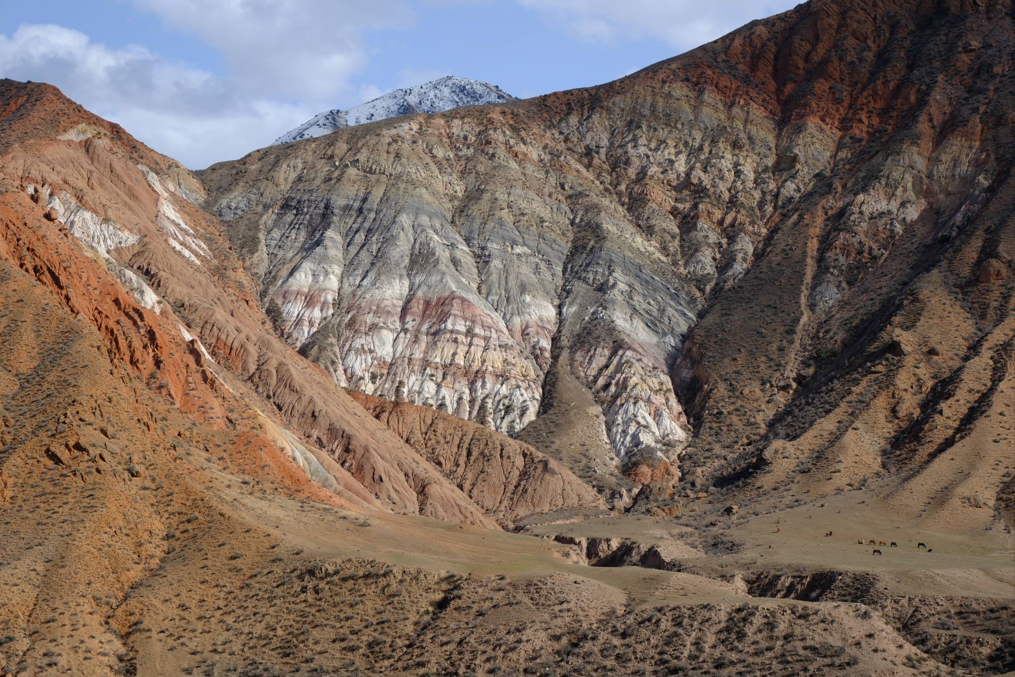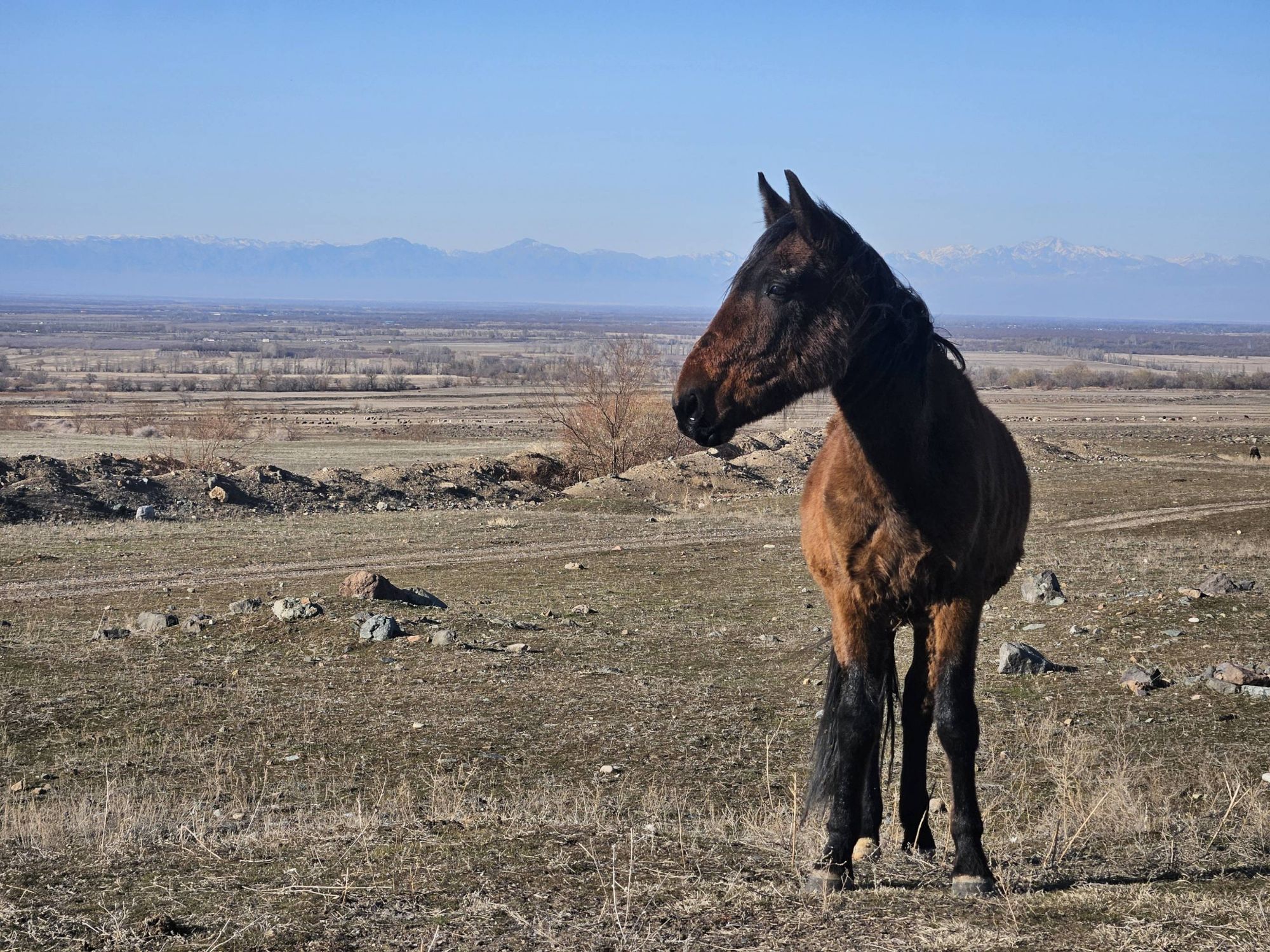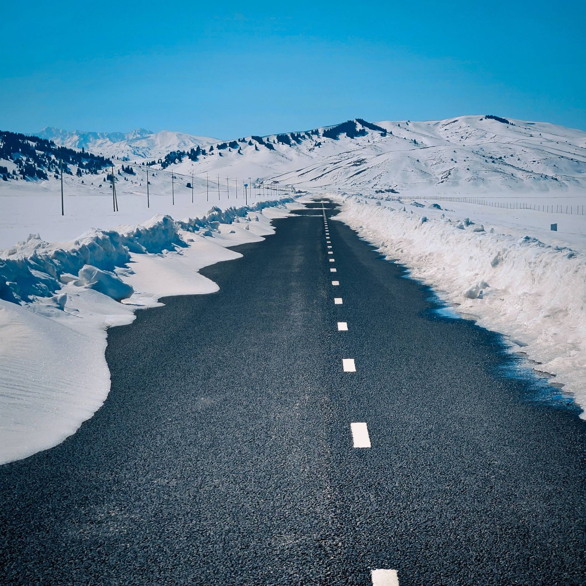 Climbing ever closer to the border with Kyrgyzstan, the snowline of the mountain peaks was getting nearer and nearer. We knew that the road over the border between Kazakhstan and Kyrgyzstan was supposedly kept open all year but at 2000m elevation, at the tail end of winter, we also knew that the conditions can change quickly. We kept an eye on the weather forecast and timed our crossing the pass into Kyrgyzstan, on the one day gap between two weather fronts. We were lucky. There was a fresh thick layer of snow on all the peaks surrounding the pass, the road itself was busier with horses than it was vehicles, the border guards were snoozing when we arrived, there was some serious snowdrift across the road, but it was open and we passed through with no problem – another stamp in the passports.