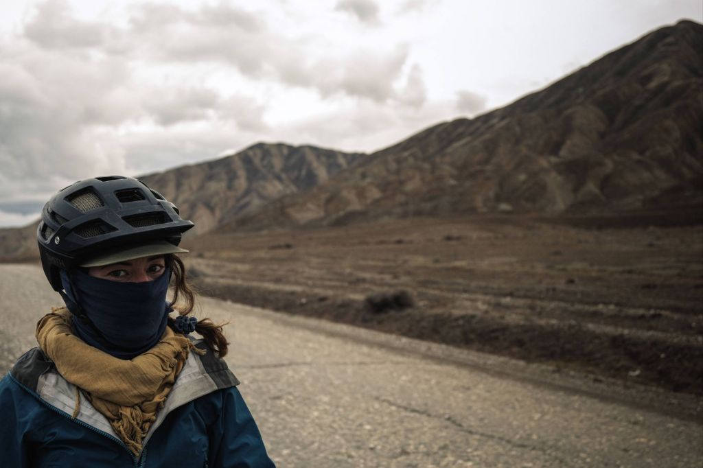 My cough had developed into a chest infection, the fluid creating a rattling, gurgling rasp that caused me to heave. The constant stream of fluid from my nose, which pooled and froze in the snood over my face was a pretty grim reality. The antibiotics didn’t seem to be acting fast enough. The cold air, day and night, combined with the uphill climbing over the pass had inflamed my asthma, giving me a persistent dry cough to add another layer to my cough. The freezing temperatures had kept me awake for hour after hour in the tent at night and no amount of extra layers was able to take off the chill that felt as though it was deep in my bones. I hadn’t felt my toes for days. I felt exhausted and weak. No amount of sleep or food seemed to be making any difference. No amount of deep breaths seemed to give me enough oxygen. Despite doubling my inhaler doses, I was out of breath and crawling along even the flatest of roads by the lakeside. It got to me mentally. Stopping for a rest day felt like giving in – it was, after all, only a stupid cold. The slower I went, the more exhausted I felt, the darker things became mentally.