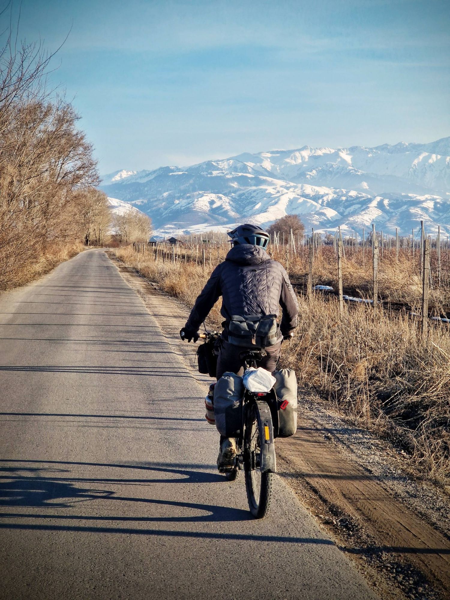 Safe to say, we lost yet another night’s sleep, and emerged in Almaty feeling like we were in the trenches of an ultra endurance race facing our fourth day without any sleep. We rebuilt the bikes basking in the sun that poured through the windows of Almaty Airport arrivals hall, letting the light and warmth recharge our batteries as though we were solar powered. By 4.30pm we were rolling out of there, looking forward to a short 25km across the city to our wonderful WarmShowers host. It’s was a beautiful, blue sky winters day, and the combination of the magical snow covered ground, traffic that obeyed rules and logic (a novelty after being in Nepal) and a seemingly endless view of the Northern Tien Shan Mountains refilled our energy supplies better than any sticky sports gel ever could.