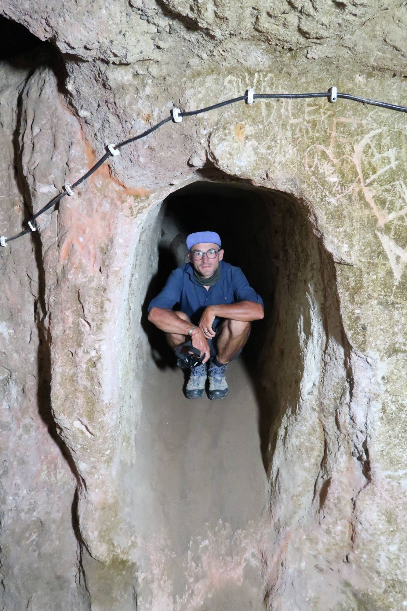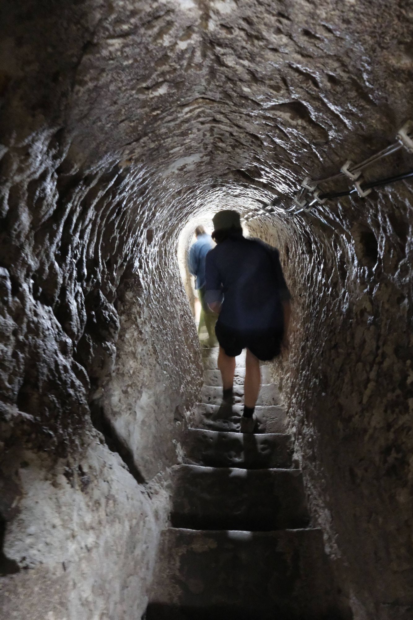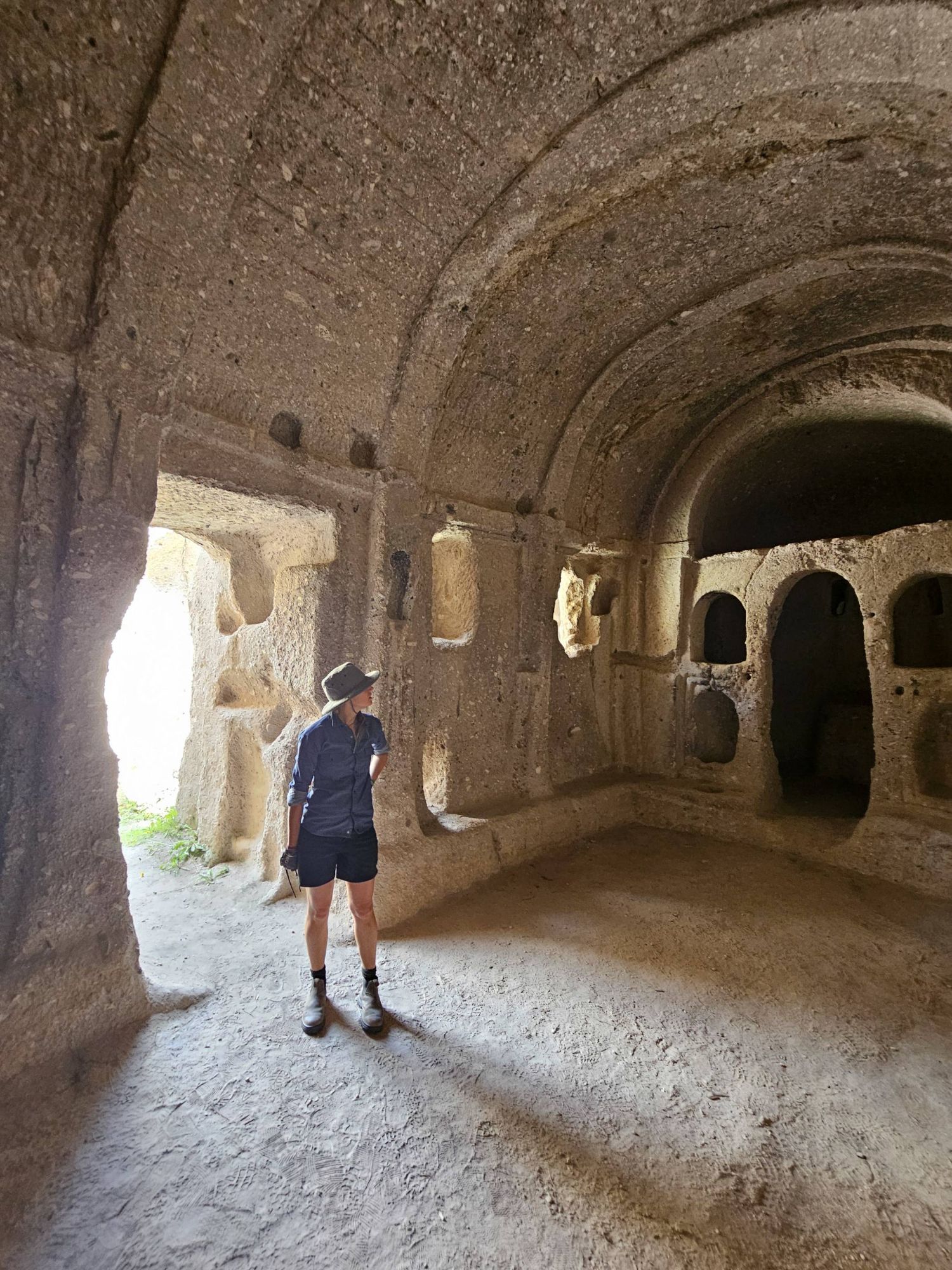 After our few days in the Cappadocia region, it was then on to the land of the underground cities. We took a small detour to visit Derinkuyu which is the largest underground city they have discovered so far (they are frequently finding new ones!). The small and unassuming entranceway at surface level gives no indication of the 8 stories of caves hidden away beneath it. The caves were split into different rooms again, but this time also had the complexity of airways and light shafts and water inlets. Pretty impressive. It kind of blew my mind that humans lived here, and yet also seemed totally normal and natural. Certain sections had huge stone round doors (that looked a bit like millstones) that could be slid into place to stop intruders. It was like a real life Indiana Jones film set, and coming from a family of Indi-fans I naturally felt the need to recreate the famous hat-under-the-rolling-stone scene, I mean it would have been rude not to.