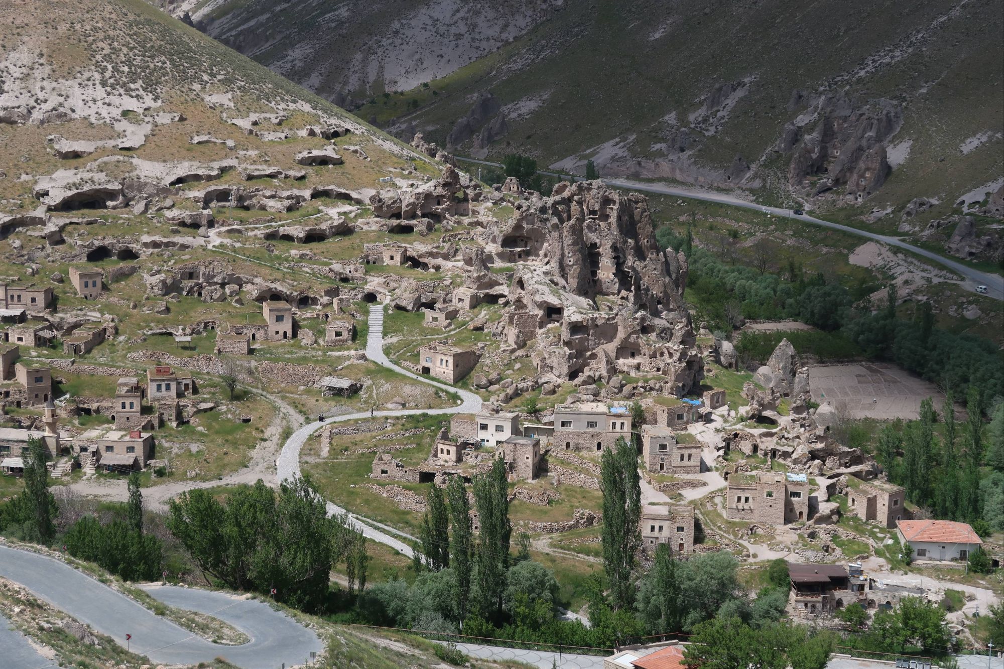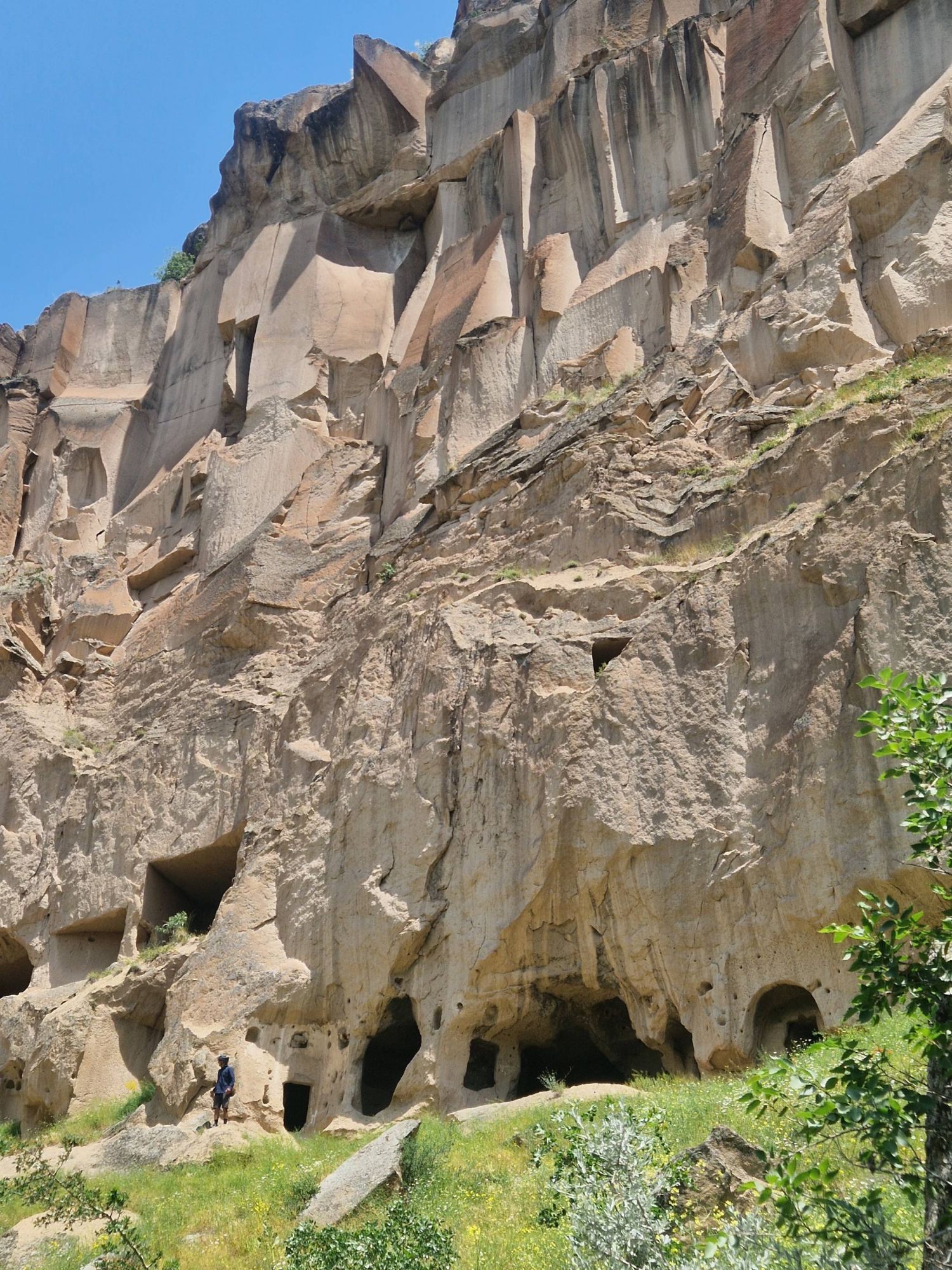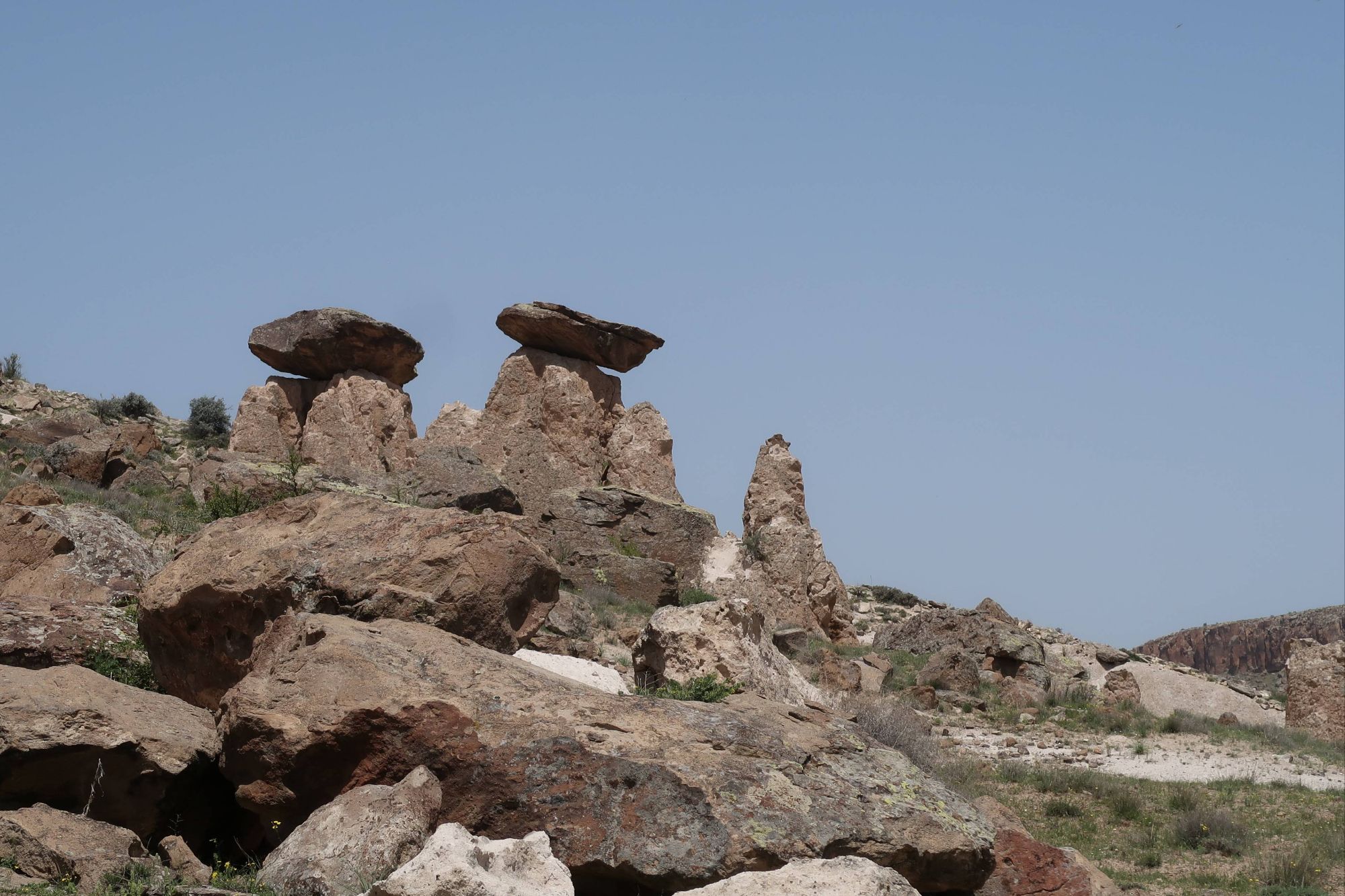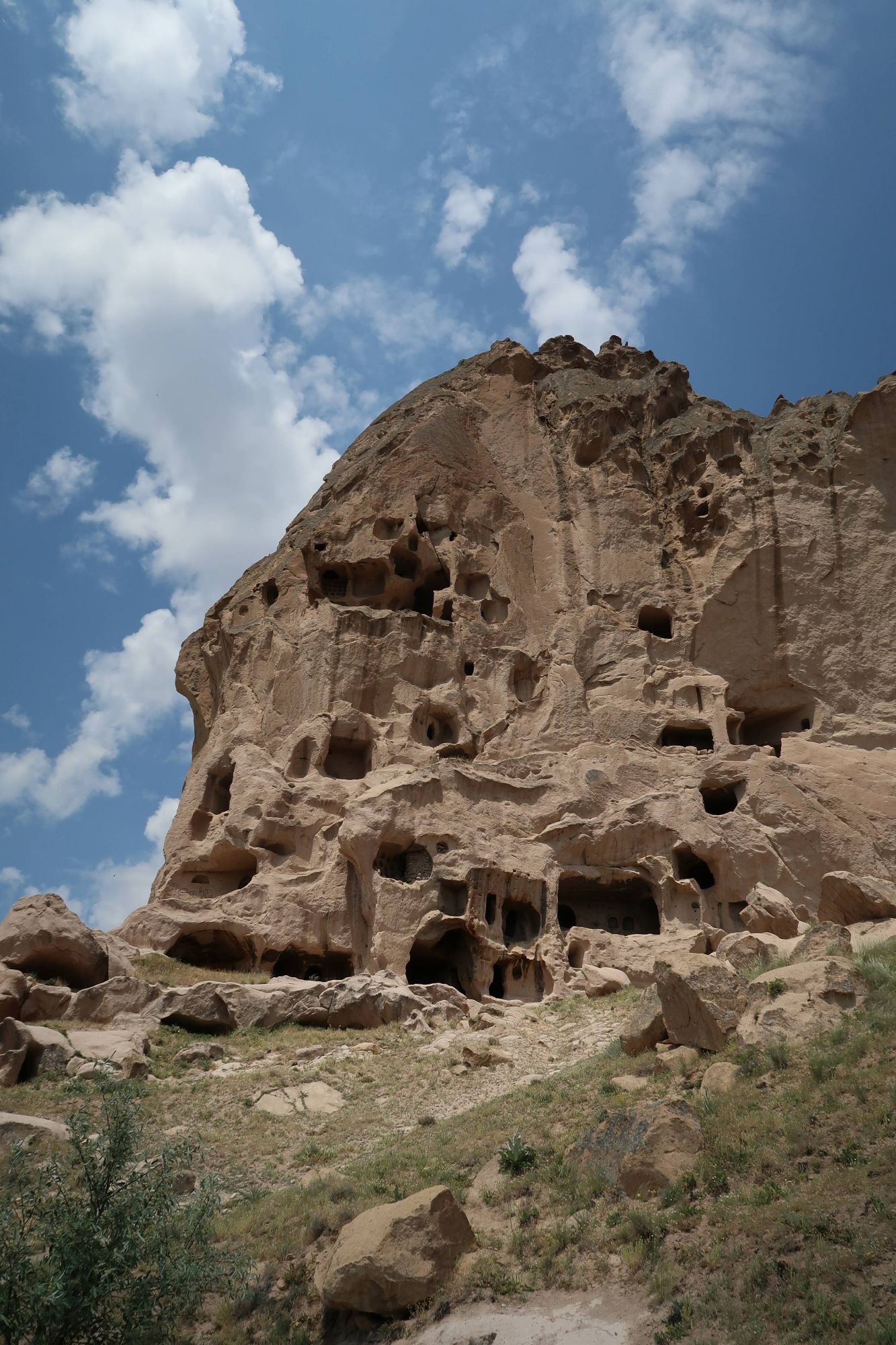 The wildflowers remained with us as we approached the Cappadocia region. A region famous for it’s cave systems, underground cities, ‘fairy chimneys’ of rock and, now thanks to tourists, hot air balloons. We approached the region from the South East, and joined a popular bikepacking route to take us on some off-road trails to see the best of the region. There are so, so many off-road routes in this area so we were pretty surprised when the route took us down a dried up river bed that quickly turned into deep, energy-sapping, unrideable sand. We cursed ourselves for not spending the time to work out a route for ourselves and then cracked-on, pushing and heaving the bikes, using old hike-a-bike muscles that haven’t had a strength session in a while and sweating profusely under the midday heat. But as soon as we crested the edge of the canyon near Soganli, and plummeted down the off-road track towards the river, all was forgiven. As we caught our first glimpse of the famous caves and fairy chimneys, we stopped in our tracks and tried to take in what we were seeing. A whole canyon, carved deep and wide by the river, the bottom full of green trees and grasses, surrounded by fairy chimneys, hundreds of them, all with little windows and doors carved into them. Higher still, and all the cliff faces of the canyon were scattered with cave entrances, windows and the remnants of stairways and walkways linking them all. It was incredible. The photos really don’t do it justice. And once we had the opportunity to walk around inside them – wow. They were so much more homely than I ever imagined – separate rooms for sleeping, storage or socialising. Communal kitchens centred around the one chimney, the ceiling, blackened by the years of smoke. Washhouses with troughs and pipeways linking them together – all carved out of stone. But the thing that was most mind-boggling was the sheer number of them, everywhere you looked. And even as we pedalled through one canyon after another, heading further North towards the more touristy towns, you could look up and see even more caves or fairy stacks tucked into the trees. It’s hard to imagine that many people living here. And now they are all empty, where have all the people gone!?