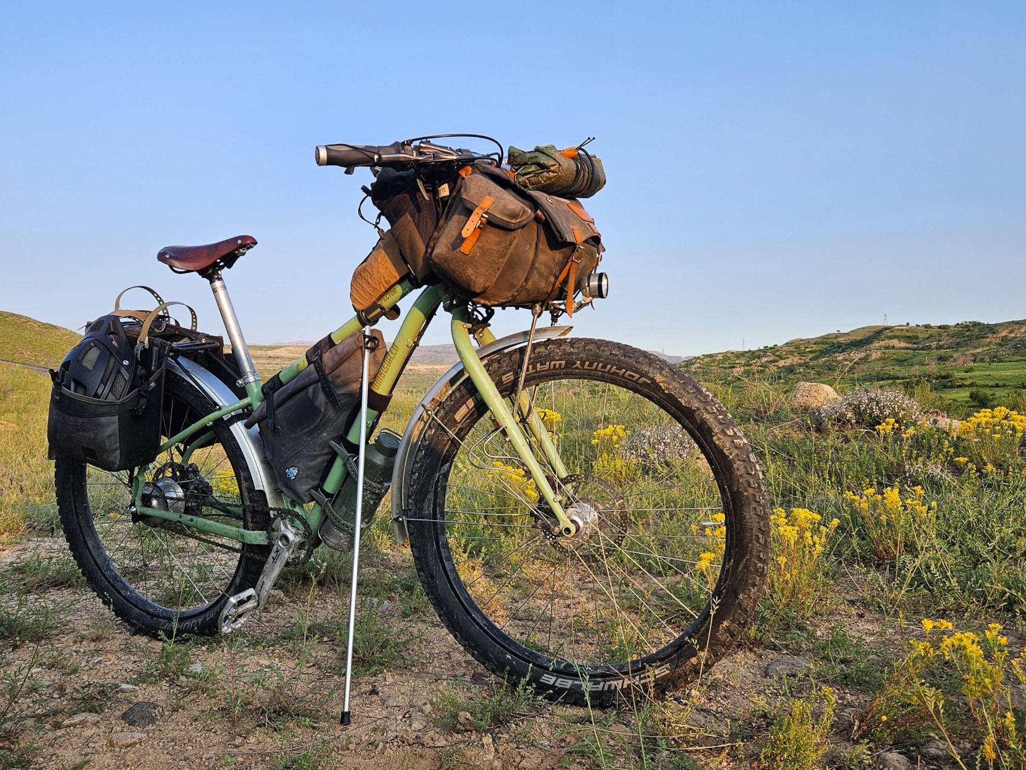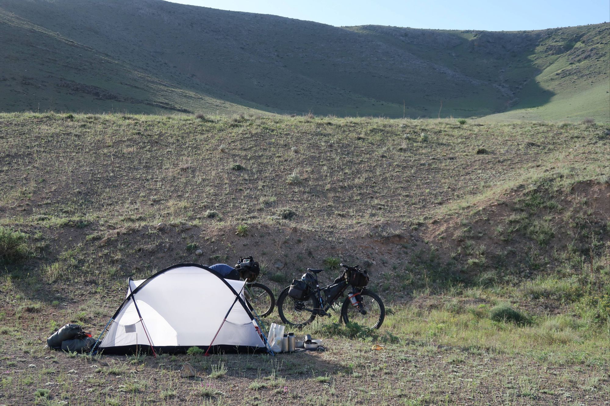 We entered Turkiye from Georgia via a quiet, mountainous border-post under stormy skies. After enduring a sweaty and rain filled afternoon, climbing about 1000m, the thunder and lightning also caught up with us. We took refuge in a dilapidated and disused prayer room / shipping container that had definitely seen better days. But for us, it offered a chance to dry off and avoid the worst of the incoming storms (although, perhaps sleeping in a metal box, in an open meadow, on an exposed mountainside, in the thunderstorm, wasn’t our wisest move!). After squishing our tent and the bikes inside, Ted stood in the rectangular space where a door had once been and watched the weather. ‘That definitely wasn’t a cow’ was all I heard him say before I remembered that there were bears in these parts. The fast moving, shaggy haired, lolloping bounce of a bears behind disappeared away into the trees on the other side of the meadow before I caught a proper glimpse, but Ted was right, it definitely wasn’t a cow. We ‘ummed’ and ‘aahed’ about what to do. We wondered whether we should hang our food outside (as we had always done in bear country before) but that would mean heading into the trees where the bear had just taken cover. It didn’t feel sensible. Instead, Ted gathered up some of the flimsy, broken plastic sheets from around the shipping container and casually propped them over the doorway, making a barricade of sorts. Standing back to look over his handiwork, he sarcastically announced ‘a bear is not going to come through that’. I laughed but took solace in the fact that a bear is unlikely to ever seek out lentils, rice, oats, chai seeds and tea, which was mainly what we were carrying. But, in the name of keeping us bear safe, we endured the hardship of eating all the chocolate we had with us before going to sleep.